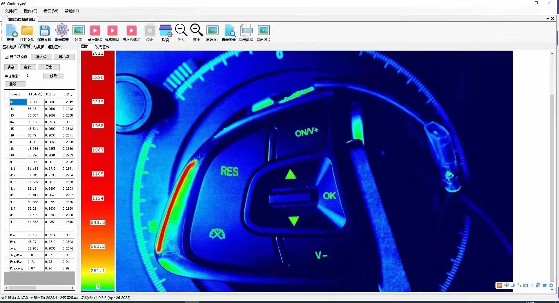 For the measurement of backlit symbols, HOPOOCOLOR has specially designed a measurement system, which can automatically select backlit symbols based on chromaticity and brightness values, and is completely independent of the shape, size, position and positioning of symbols. This greatly simplifies the measurement of symbol-like components on the dashboard, making it easy to ensure uniformity of luminance and chromaticity. The software can perform calculations for one character individually or for many characters at the same time, ensuring uniformity of illumination between symbols and within symbols with a single measurement.